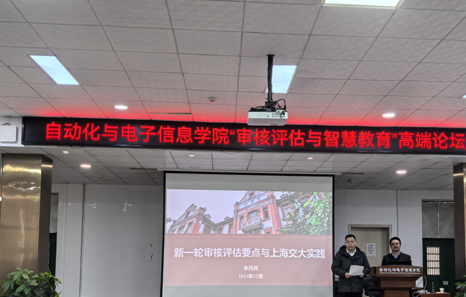 在工科楼阶梯教室举办“审核评估与智慧教育”高端论坛。此次论坛特邀上海交通大学教务处副处长朱燕民教授、我校专业认证指导中心主任段斌教授分别作主题报告。