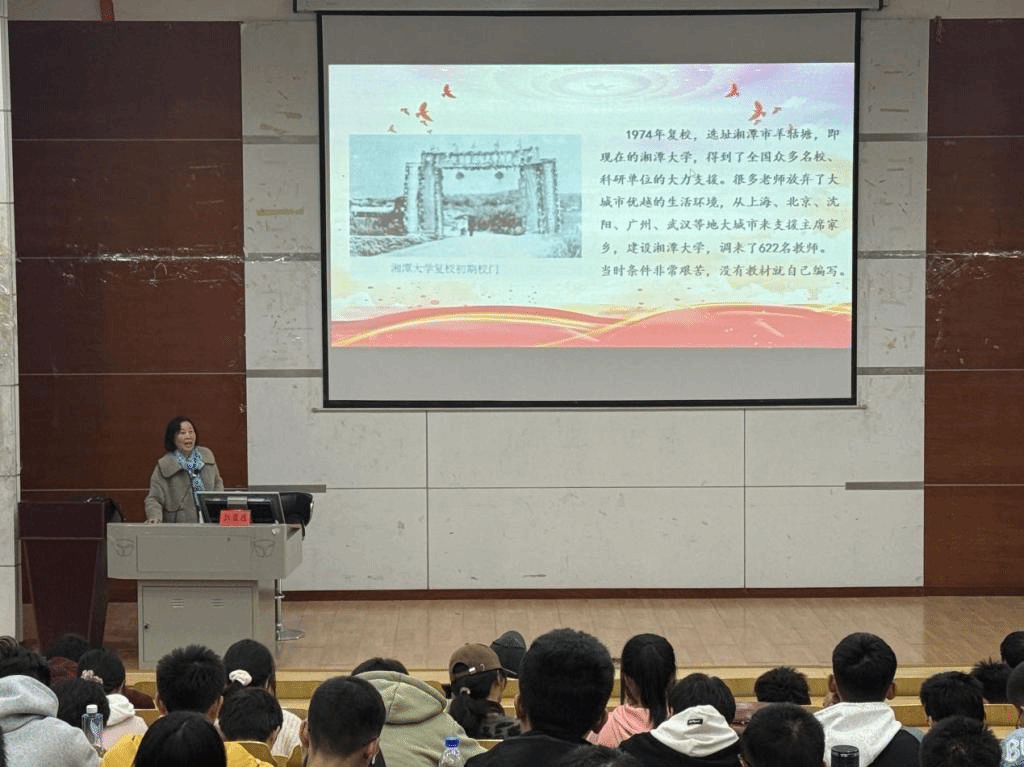 (通讯员 熊峰 方琪)为进一步加强对广大青少年的思想引领,激发爱国之情、砥砺强校之志、实践报国荣校之行。spbo足球比分 关工委于12月3日在逸夫楼第二报告厅组织开展以“传承湘大红色基因,铸造母校学子辉煌”爱国荣校主题公开课。学院关工委副主任彭爱莲担任主讲嘉宾进行授课,学院党委副书记、关工委主任郭凤安,辅导员熊峰出席,2024级自动化专业与人工智能专业全体学生参加了此次活动。